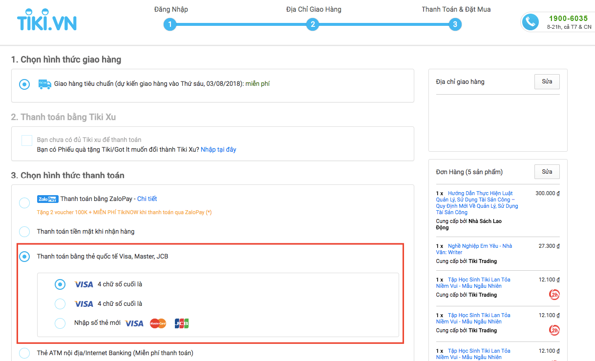 Bước 3: Chọn hình thức thanh toán