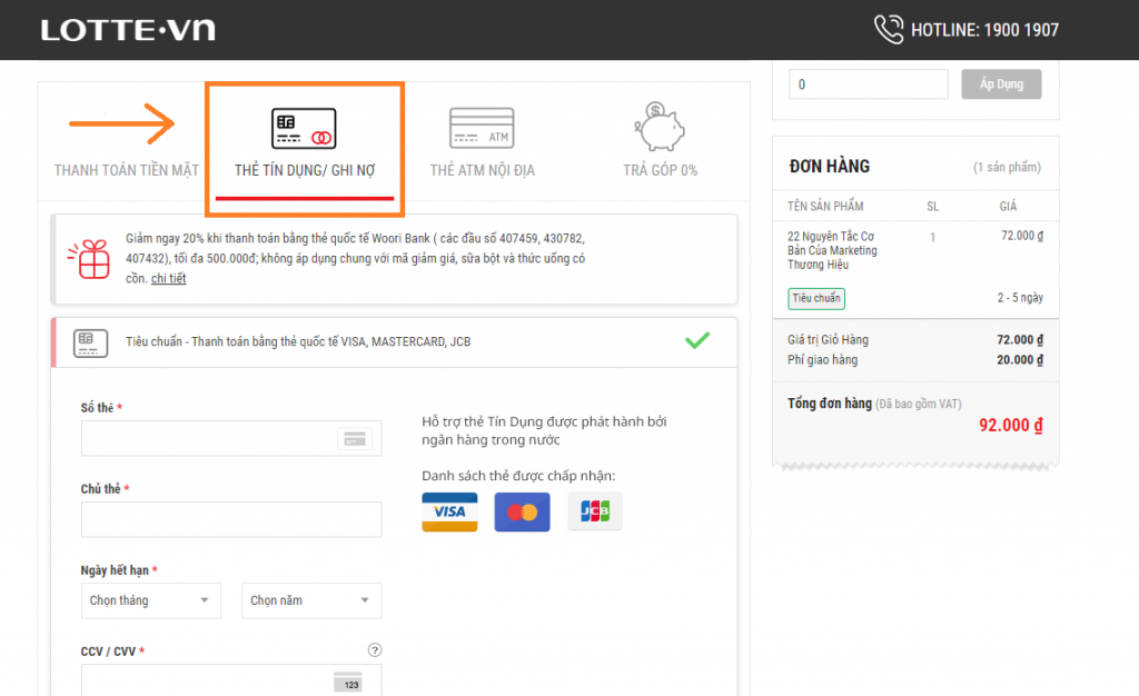 Khách hàng chỉ tiến hành thanh toán khi hệ thống đã hiển thị số tiền giảm giá. - TrueMoney Việt Nam và LOTTE.vn không chịu trách nhiệm về việc hệ thống không hiển thị số tiền giảm giá mà khách hàng vẫn tiến hành thanh toán