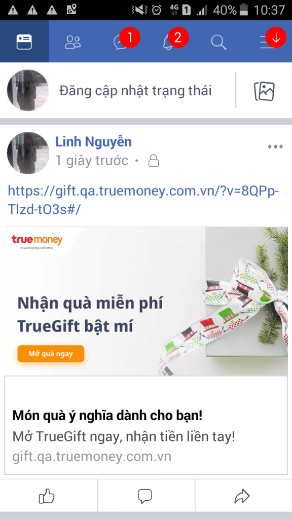Bước 1: Click vào đường link nhận lì xì TrueGift từ bạn bè.
