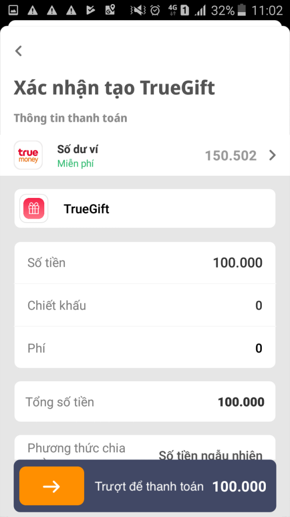 Bước 4: Xác nhận thông tin gói lì xì TrueGift, sau đó trượt để thanh toán.