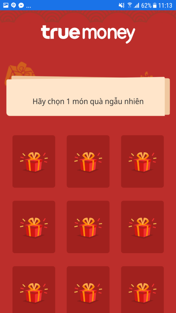Trong trường hợp gói lì xì có nhiều mệnh giá quà tặng, hãy chọn một món lì xì ngẫu nhiên.